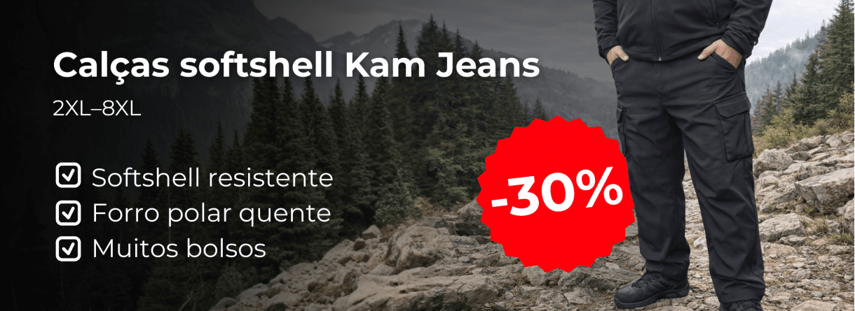 Bem-vindo à loja online da Motley Denim! Aqui encontra todo o tipo de roupa de homem em tamanhos grandes. Oferecemos roupas masculinas elegantes de tamanho grande. Temos jeans e calças em tamanhos W40-W70, e também t-shirts, camisas, camisolas com capuz, e muito mais, em tamanhos 2XL-12XL. Dentro da nossa seleção encontrará qualquer tipo de roupa de homem em tamanhos grandes – quer seja roupa para o dia a dia, roupa de trabalho ou desportiva. Se procura roupas com estilo em tamanhos grandes veio ao sítio certo - à Motley Denim!