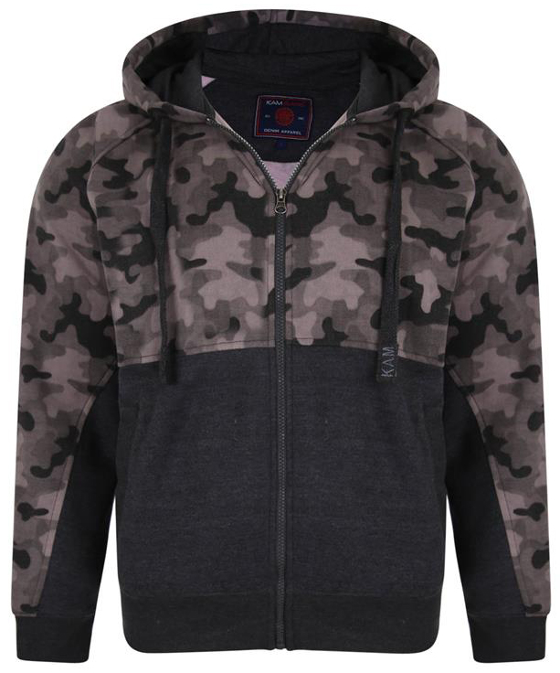 Guia de tamanhos - Kam Jeans 7036 Camo Print Full Zipper Hoodie Charcoal