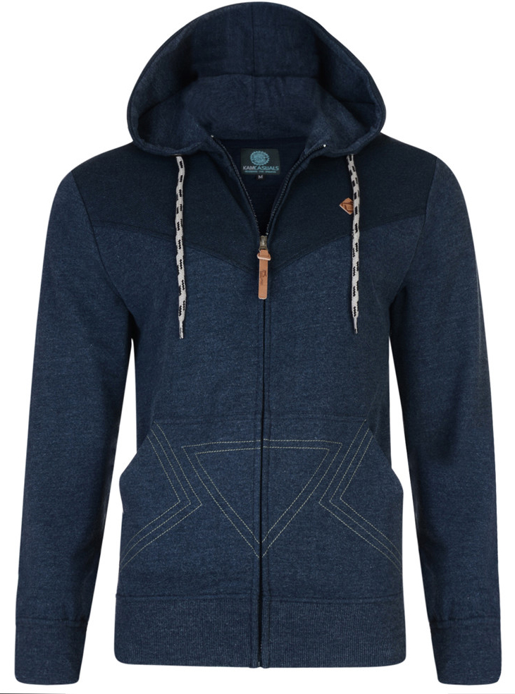 Kam Jeans Panel Print Hoody Navy