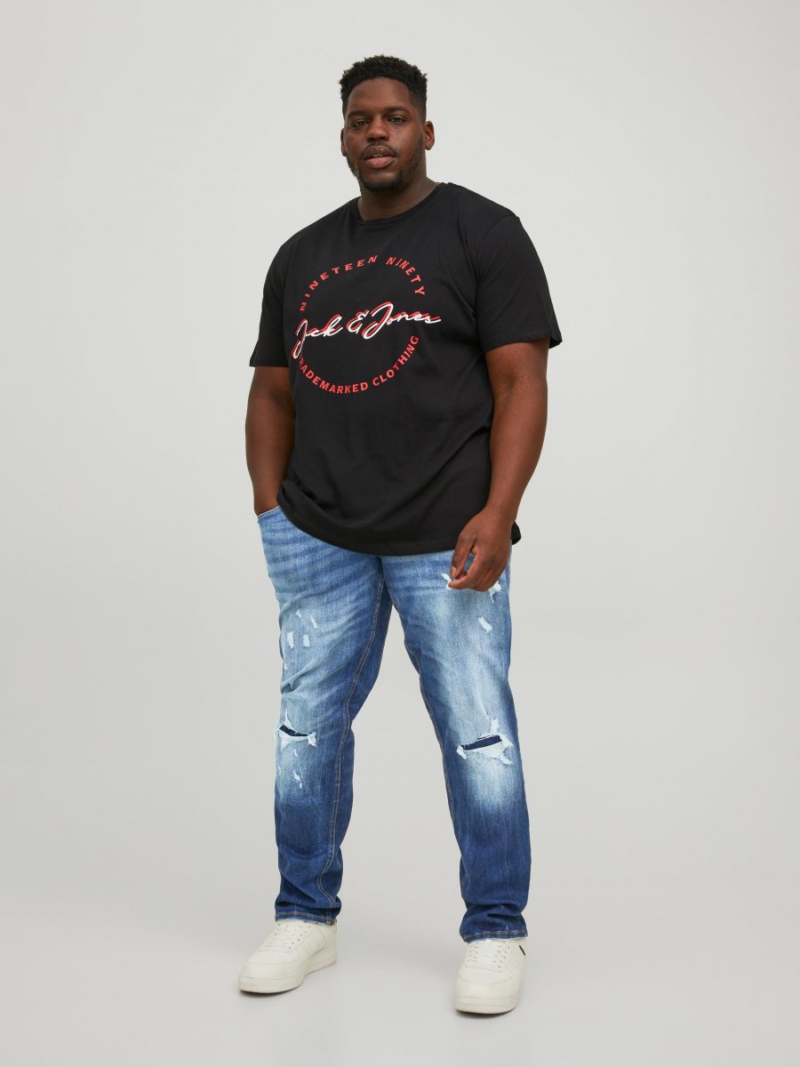 Calças de ganga em tamanho grandeDisponível em cintura W40-W60 e perna L30-L34Da bem conhecida marca dinamarquesa JACK & JONESCor azul gangaLavar à máquina a 30°Produto sazonal – os tamanhos não são repostosClique aqui para ver o guia de tamanhos