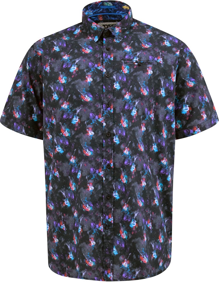 Guia de tamanhos - D555 Farnborough Short Sleeve Guitar AOP Shirt With Hidden Button Down Black