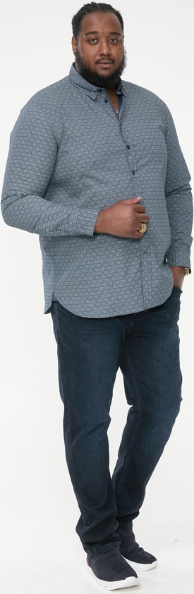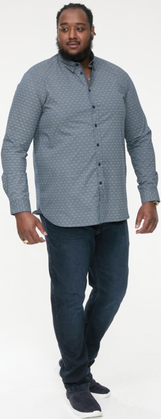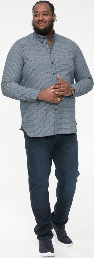 Guia de tamanhos - D555 MANGALA Geometric AOP Long Sleeve Shirt With Concealed Button Down Collar Navy