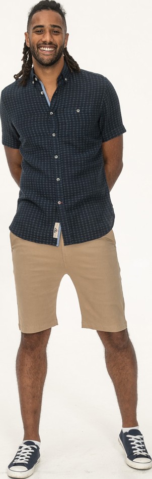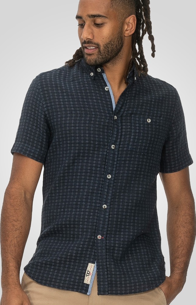 Guia de tamanhos - D555 Pontefract Jacquard Linen Mix Short Sleeve Shirt With Button Down Navy