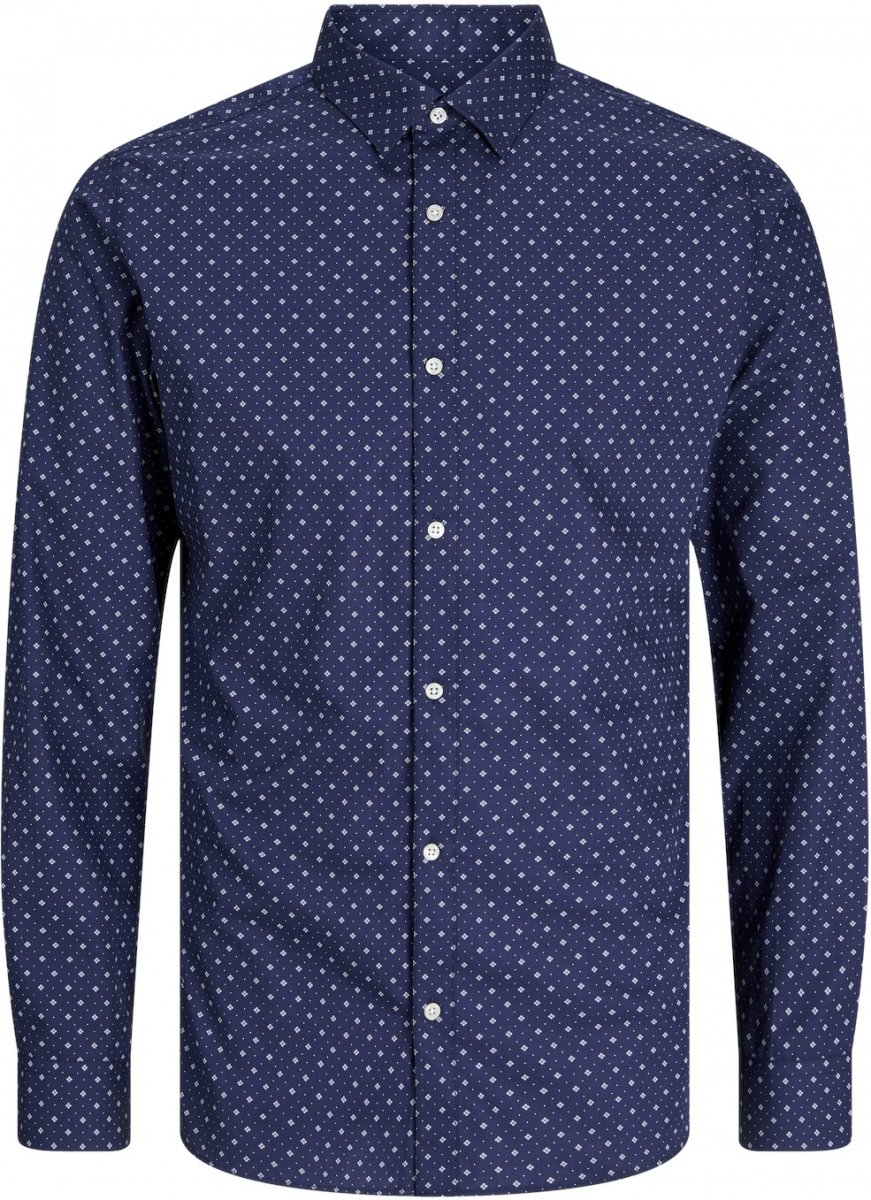 Camisa em tamanho grandeVendemos em tamanhos 3XL-8XLDa bem conhecida marca dinamarquesa JACK & JONESFabricado em 60% algodão, 40% poliésterCor azul-marinhoLavar à máquina a 30°Produto sazonal – os tamanhos não são repostosClique aqui para ver o guia de tamanhos