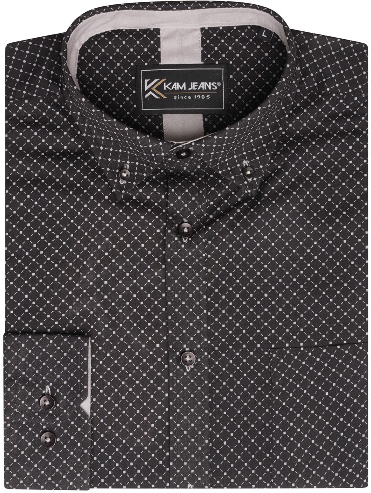 Guia de tamanhos - Kam Jeans 6299 Long Sleeve All Over Diamond Print Shirt Black