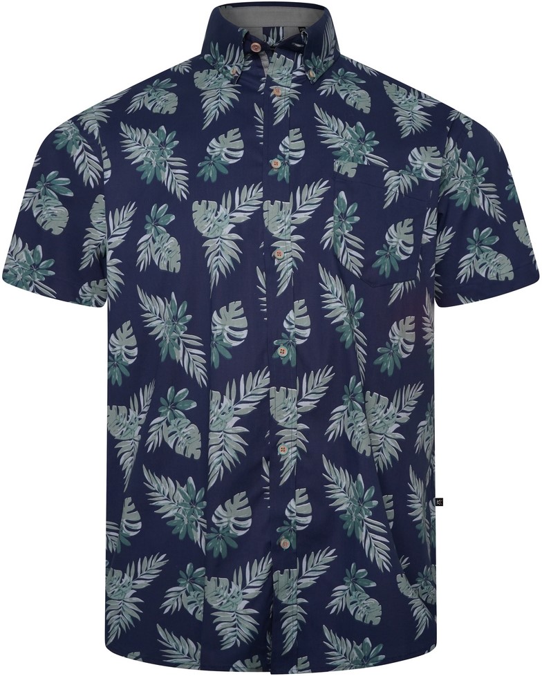 Guia de tamanhos - Kam Jeans 6331 AOP Leaf Print Short Sleeve Shirt Navy