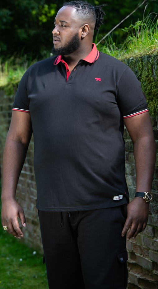 Polo em tamanho grandeCompre na nossa loja em tamanhos 2XL-6XLDa fantástica marca britânica D555Fabricado em algodão/poliésterCor pretoLavar à máquina a 30°Produto sazonal – os tamanhos não são repostosClique aqui para ver o guia de tamanhos