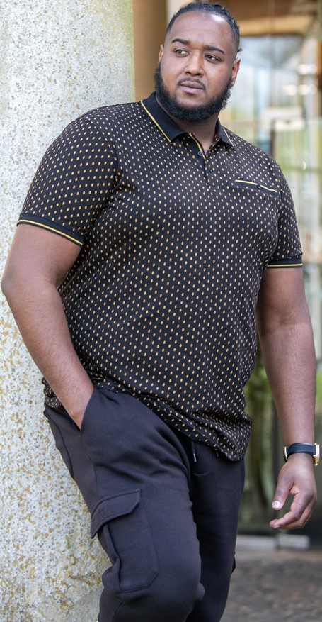 Guia de tamanhos - D555 RAUL AOP Jersey Polo With Jacquard Collar, Ribs And Chest Pocket Black