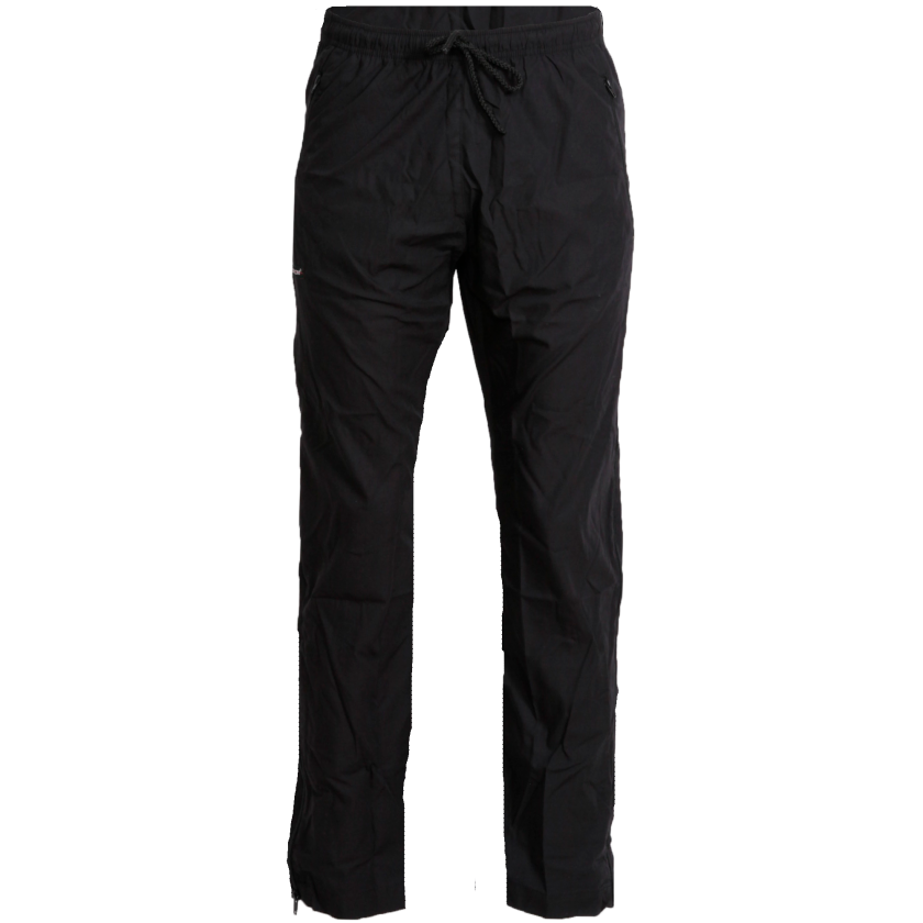 Calças leves e corta-vento em popelina, com fechos laterais de comprimento total, o que facilita vesti-las e despi-las. Uma escolha prática para quem procura conforto extra, especialmente útil em casos de mobilidade reduzida. Têm acabamento com tratamento sem fluorocarbonetos que ajuda a repelir água e sujidade. Disponíveis em preto.