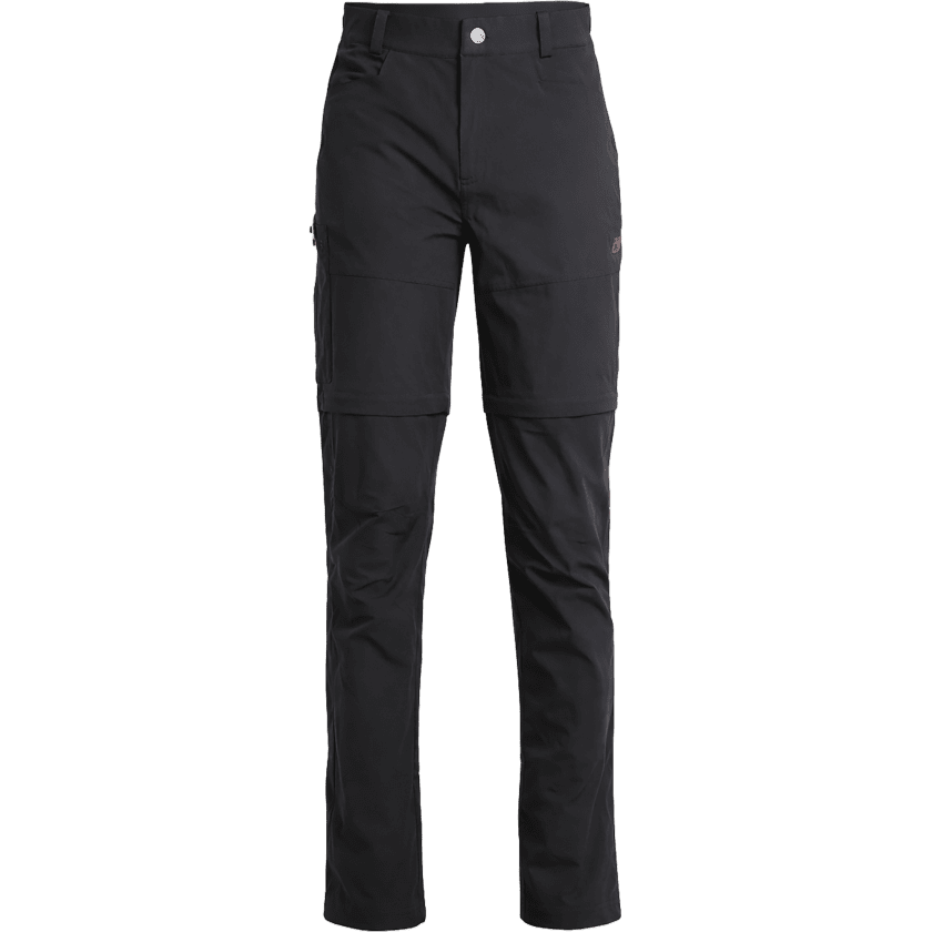 Calças de secagem rápida em confortável tecido elástico em 4 direções. A função zip-off permite transformá-las facilmente em calções. Têm bolsos com fecho e um tratamento sem fluorocarbonetos que ajuda a repelir água e sujidade. Disponíveis em preto e azul pedra.