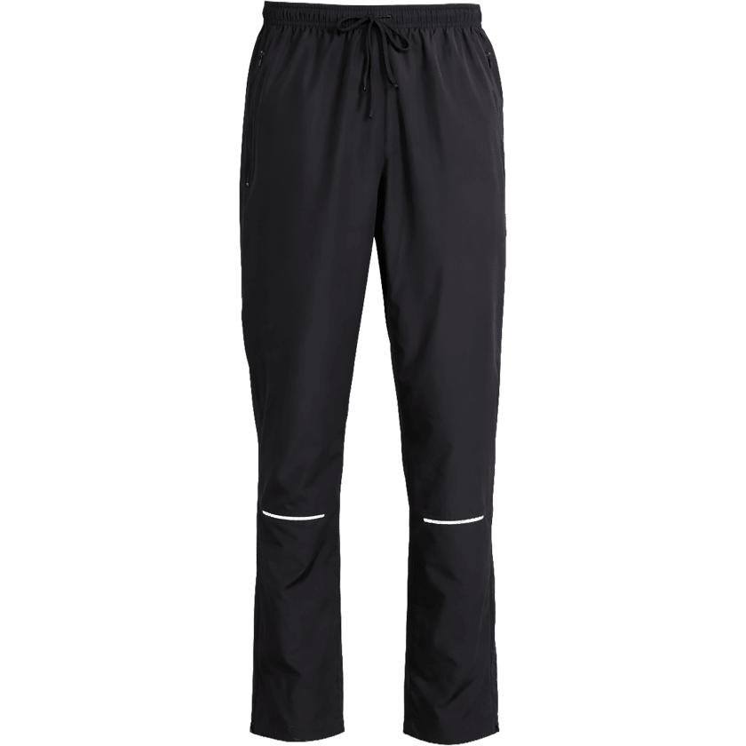 Calças leves e corta-vento em material respirável, pensadas para oferecer conforto e liberdade de movimentos no dia a dia. Têm bolsos com fecho, detalhes refletores e um tratamento sem fluorocarbonetos que ajuda a repelir água e sujidade. Disponíveis em preto.