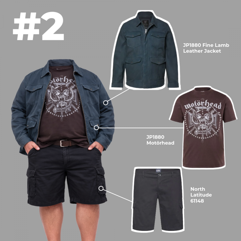 Uma boa opção para os dias de primavera mais frescos. O casaco dá mais abrigo, a T-shirt mantém o conforto e os calções cargo acrescentam bolsos práticos.