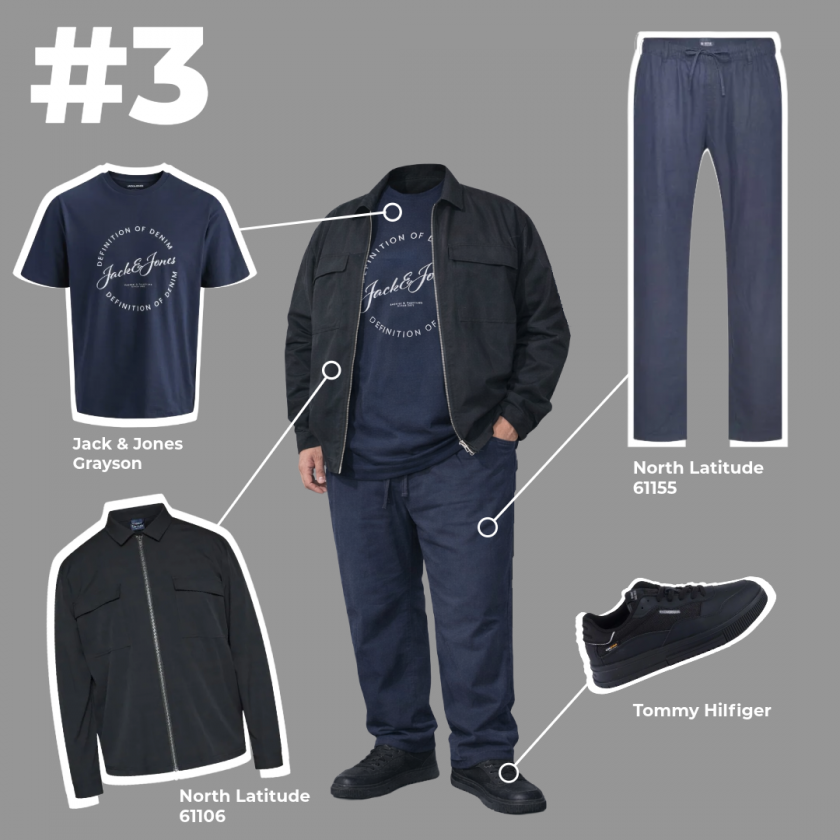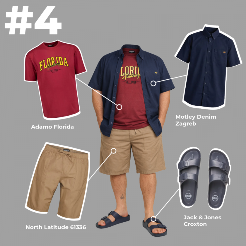 Graças às camadas leves, este outfit é fácil de ajustar ao longo do dia. A T-shirt mantém o conjunto simples, a camisa de manga curta acrescenta algum conforto extra, e os calções de ganga com as sapatilhas garantem conforto no dia a dia.