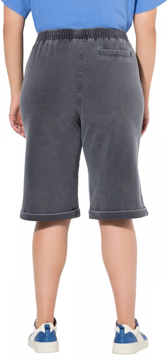 Ulla Popken Indigo Dyed Elastic Waist Jersey Shorts Black