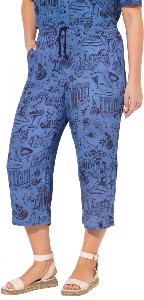 Ulla Popken Italy Print Elastic Waist Culottes Blue