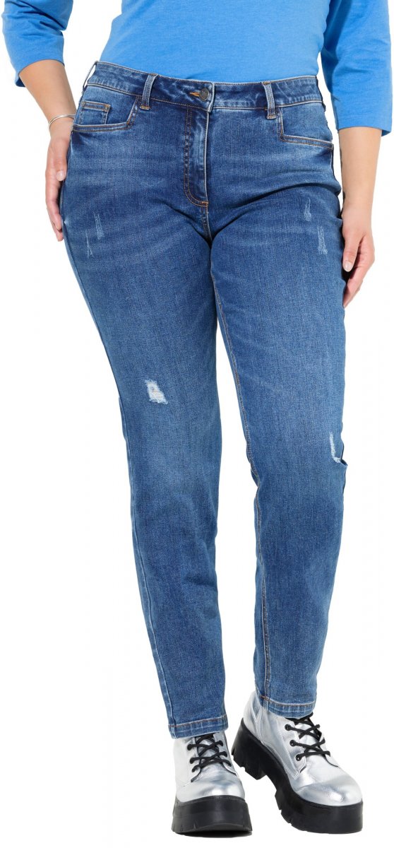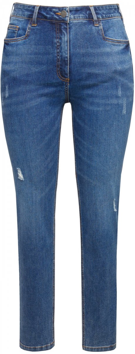 Ulla Popken Lightly Distressed Slim Leg Jeans Blue