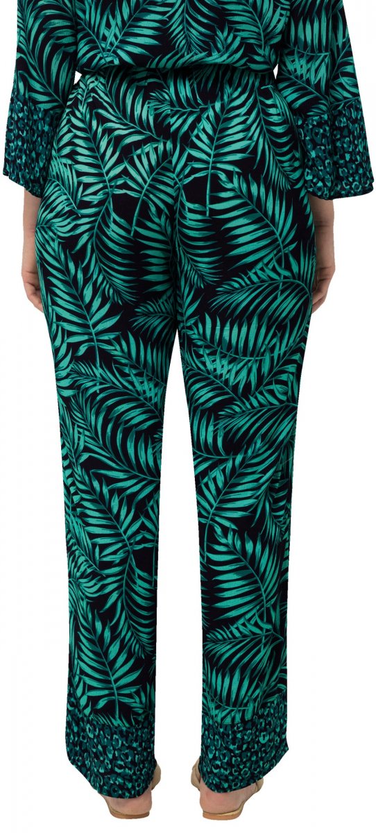 Ulla Popken Palm Leaf Print Elastic Waist Pants Navy