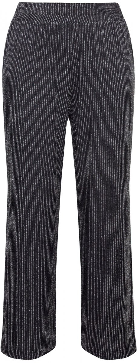 Ulla Popken Sparkling Pinstripe Elastic Waist Pants Black