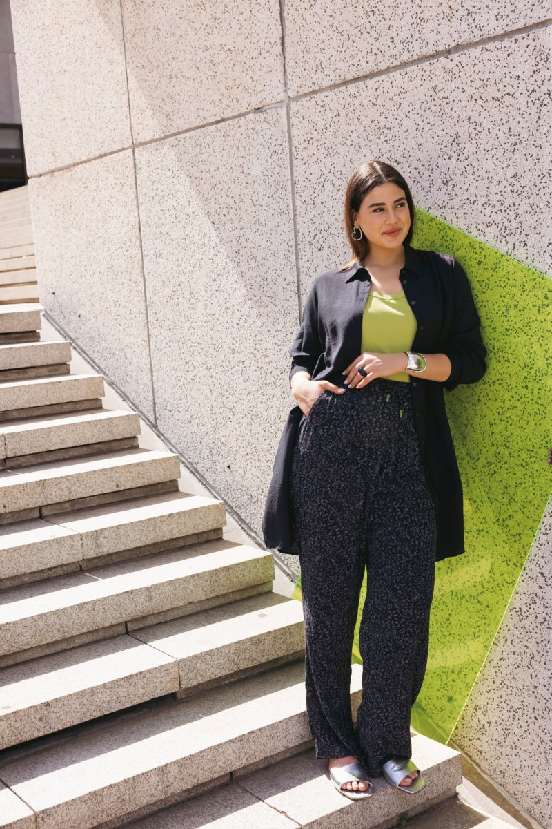 Ulla Popken Speckled Crepe Pull On Pants Black