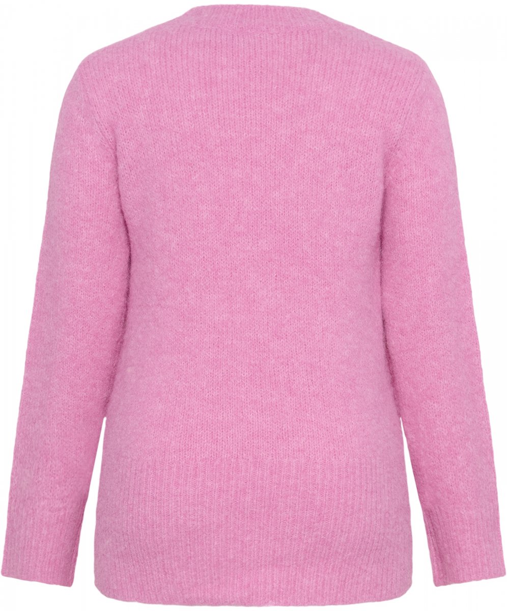 Camisola de malhaDisponível nos tamanhos S–XLDa marca Kaffe CurveMaterial: 64% poliéster (reciclado), 18% acrílico, 10% lã (certificada), 5% alpaca, 3% elastanoCorte largoCor cor-de-rosaClique aqui para ver o guia de tamanhos