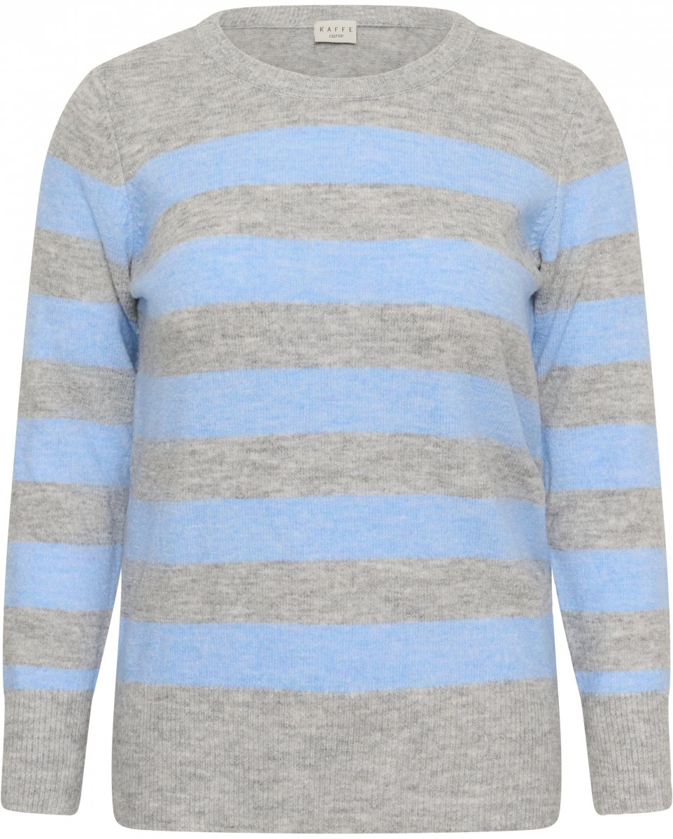 Camisola de malhaDisponível nos tamanhos S–XLDa marca Kaffe CurveFeito de 60 % poliéster (reciclado), 12 % acrílico, 10 % nylon, 9 % poliéster, 6 % lã (certificada), 3 % elastanoCorte regularCor azul