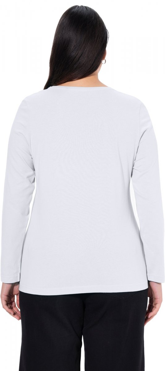Ulla Popken Basic Round Neck Long Sleeve Slim Fit Cotton Tee Snow White