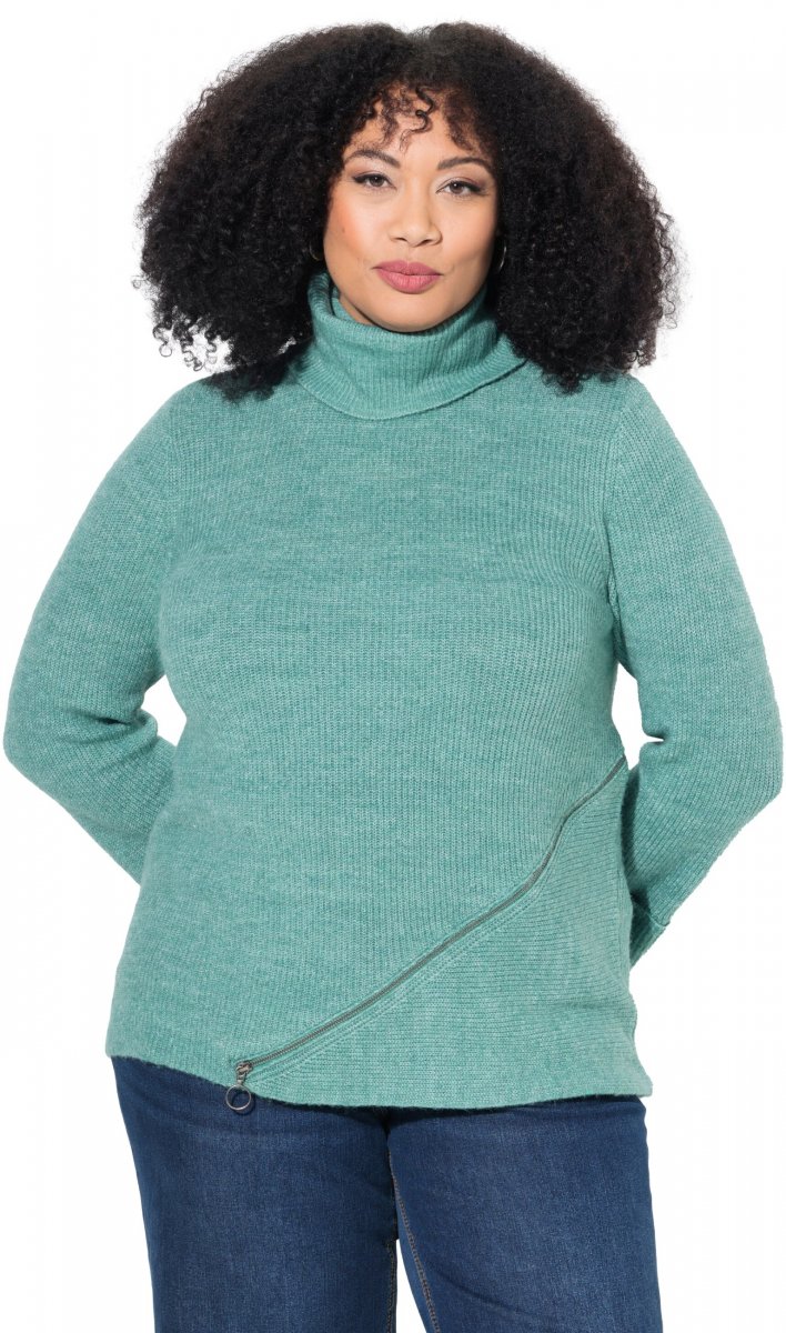 Guia de tamanhos - Ulla Popken Asymmetric Zipper Turtleneck Sweater Green