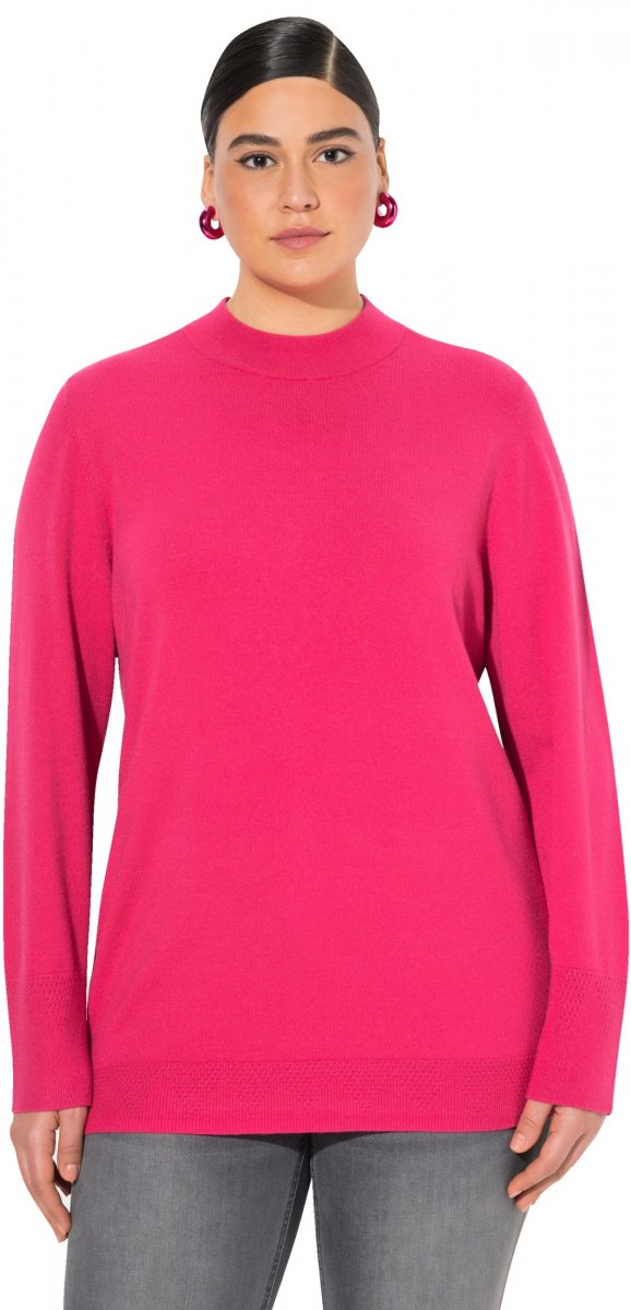 Ulla Popken Long Sleeves Mock Turtleneck Sweater Red Pink