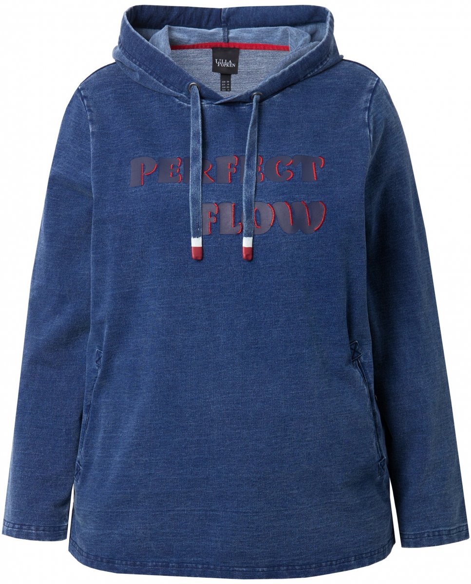 Ulla Popken Perfect Flow Embroidered Hoodie Indigo Denim