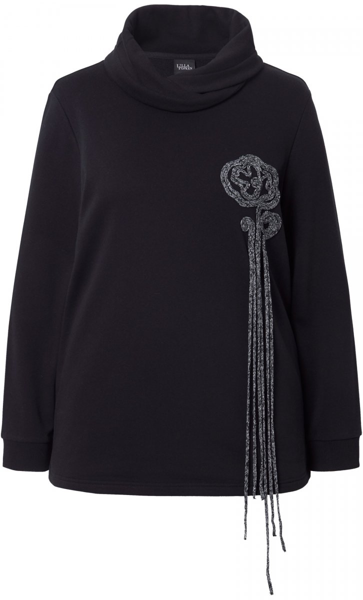 Ulla Popken Ribbon Detail Turtleneck Sweatshirt Black
