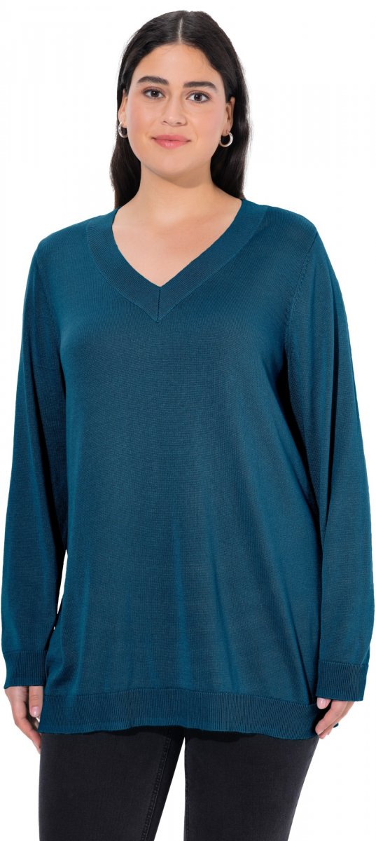 Guia de tamanhos - Ulla Popken Soft Fine Knit Pullover V-Neck Sweatshirt Teal