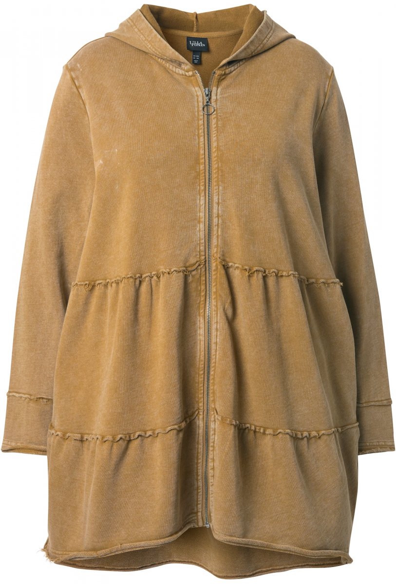 Guia de tamanhos - Ulla Popken Tiered Flounce Panel Zip Up Hoodie Mocha Brown