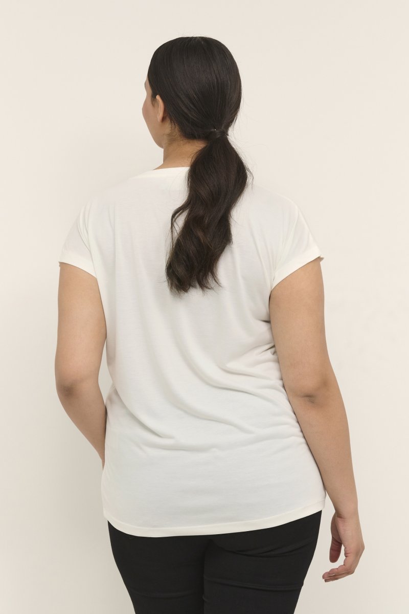 T-shirtDisponível nos tamanhos S–XLDa marca Kaffe CurveMaterial: 70 % modal, 30 % poliésterCorte largoCor brancoClique aqui para ver o guia de tamanhos