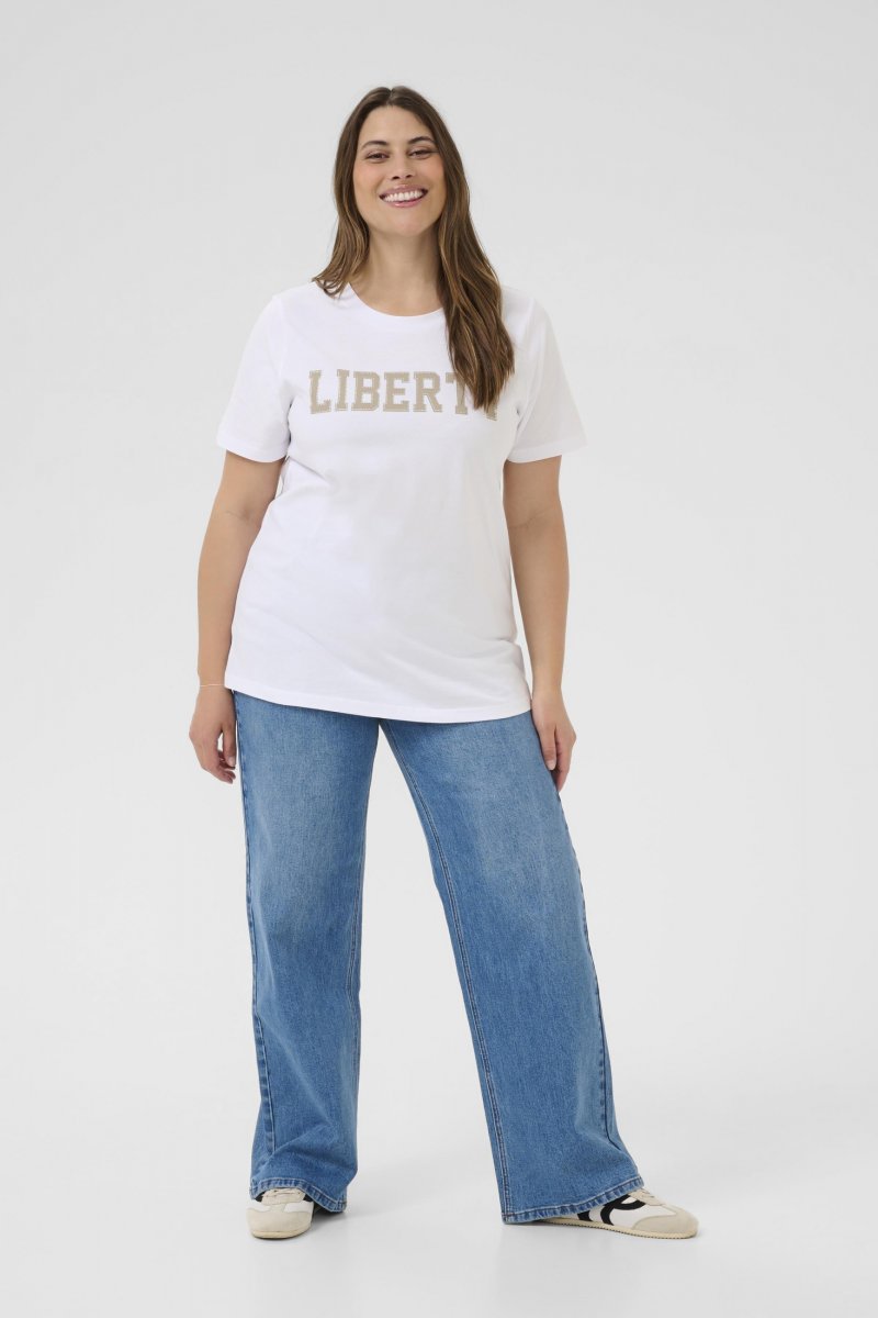 T-shirtDisponível nos tamanhos S–XLDa marca Kaffe CurveFabricado em 100% algodãoCorte regularCor brancoClique aqui para ver o guia de tamanhos