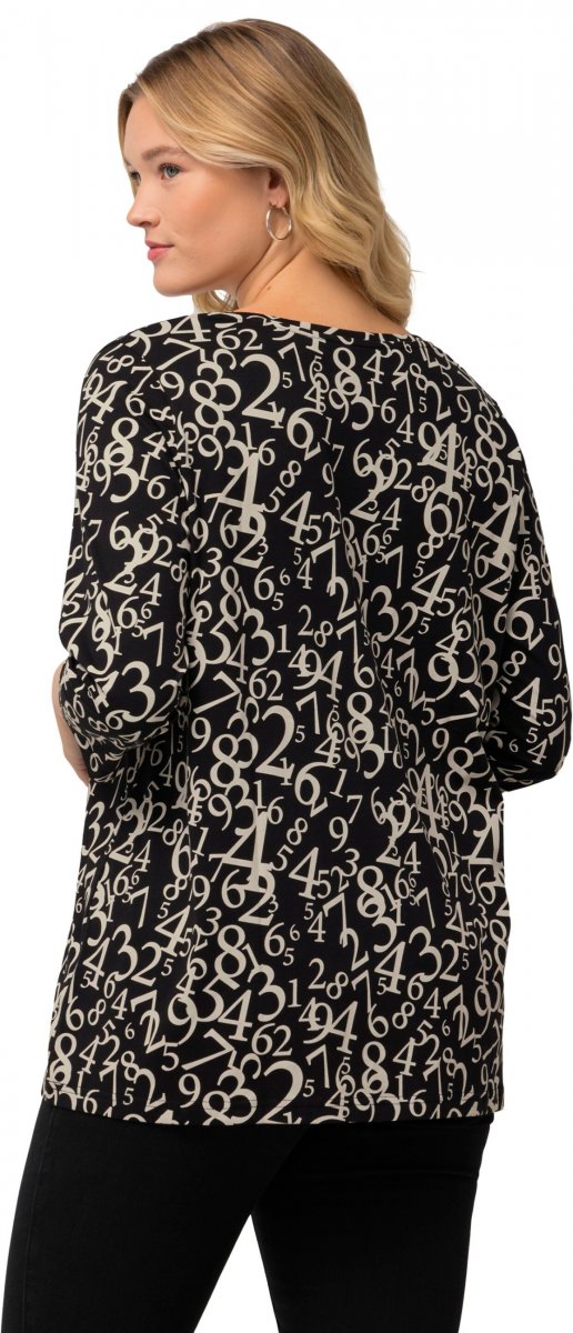 Ulla Popken Number Print 3/4 Sleeve Tee Black