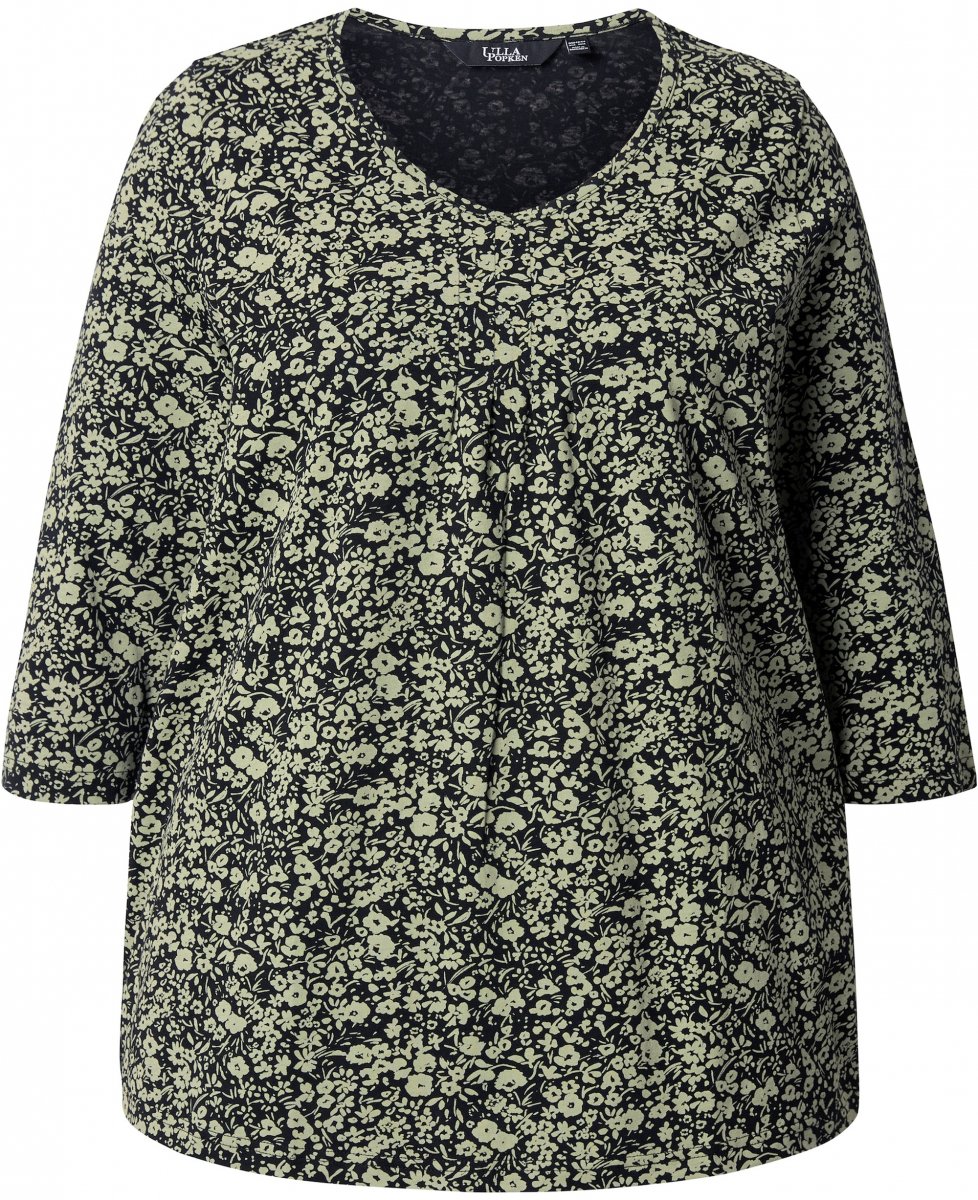 Guia de tamanhos - Ulla Popken Pleated Floral Print 3/4 Sleeve Tee Pond Green