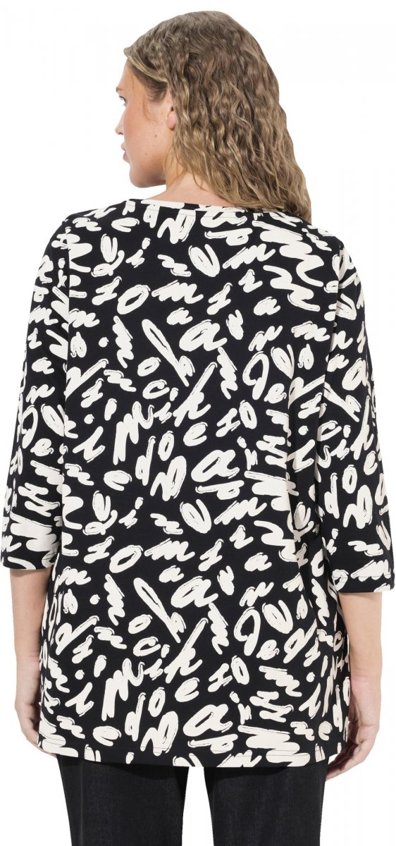 Guia de tamanhos - Ulla Popken Scribble Print Square Neck 3/4 Sleeve Tee Black