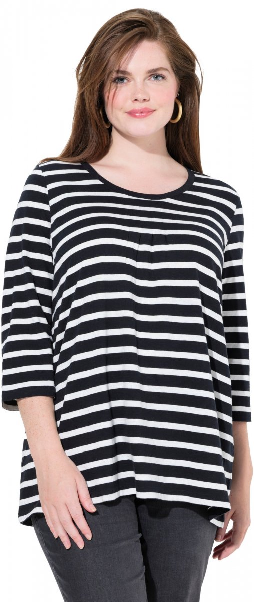 Guia de tamanhos - Ulla Popken Striped 3/4 Sleeve A-Line Tee Black